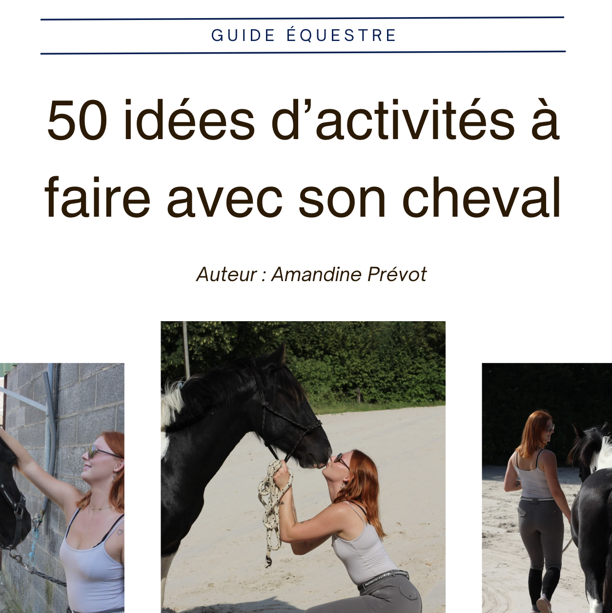 E-book regroupant 50 idées d’activités originales pour enrichir votre quotidien avec votre cheval, renforcer votre lien et partager des moments de plaisir, à pied, monté ou en groupe.